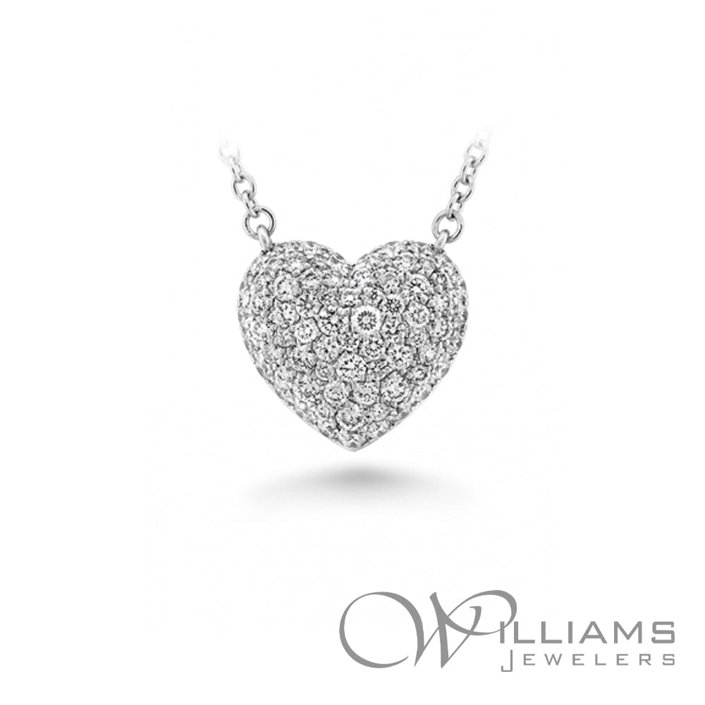 Memoire 18 Karat White Gold Pave Heart Necklace with 73=.50 Carat Total Weight, Round, G-H Color, VS-SI Clarity Diamonds on a 16-18 Inch Cable Chain. Serial# 1115065-1