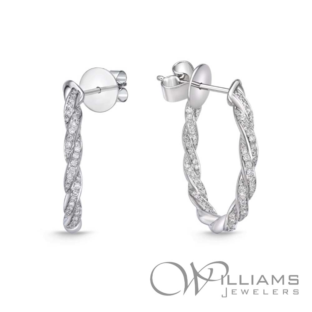 Memoire 18 Karat White Gold Vine Twisted Diamond Hoop Earrings with 144=.39 carat Total Weight Round G-H Color, SI Clarity Diamonds. Serial # 1608458-1