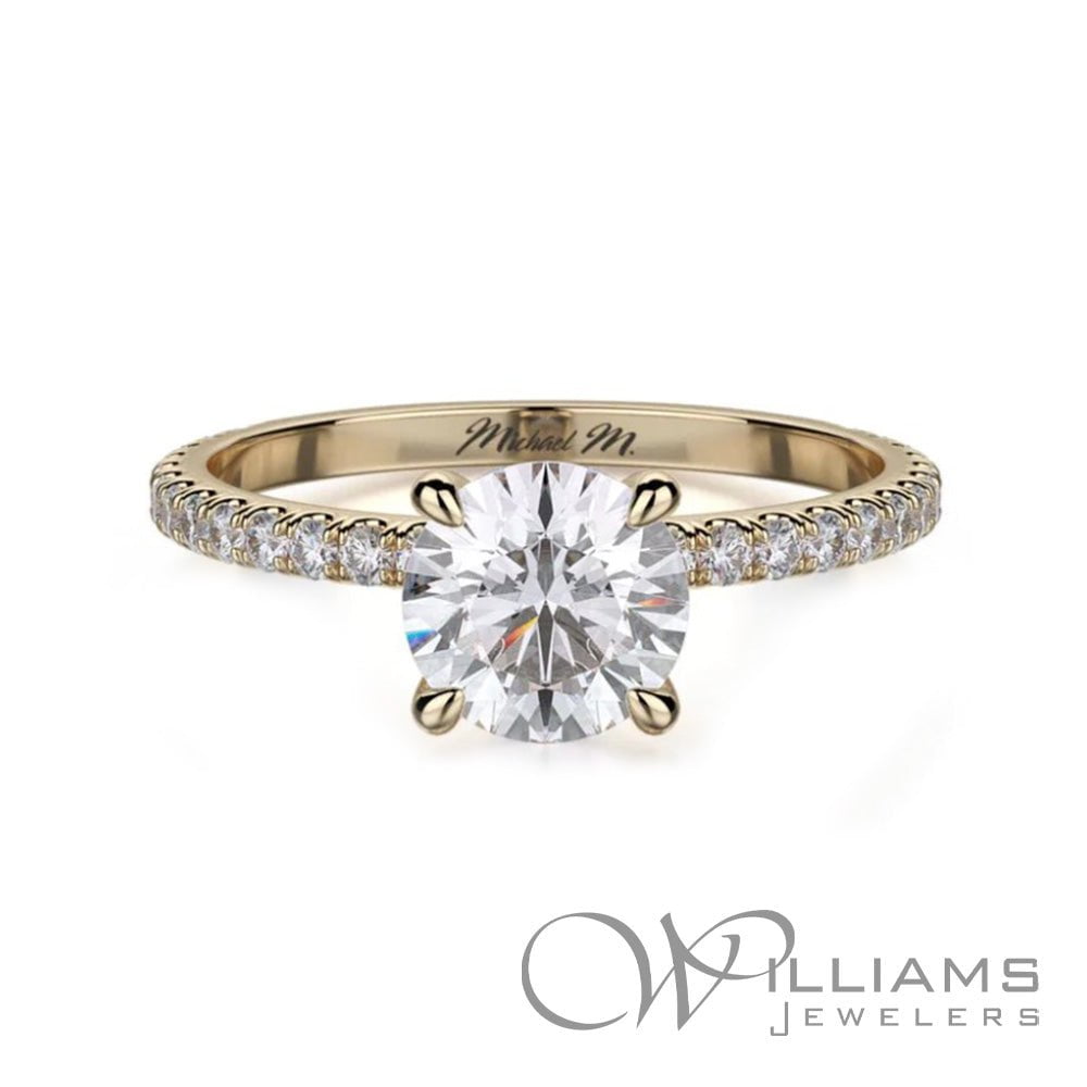 Michael M 18 Karat Yellow Gold Crown Diamond Semi-Mount Engagement Ring with .30 Round G Color, VS1 Clarity Diamonds and a center 8mm (2.00 Carat) Round Cubic Zirconia, Size 6.5