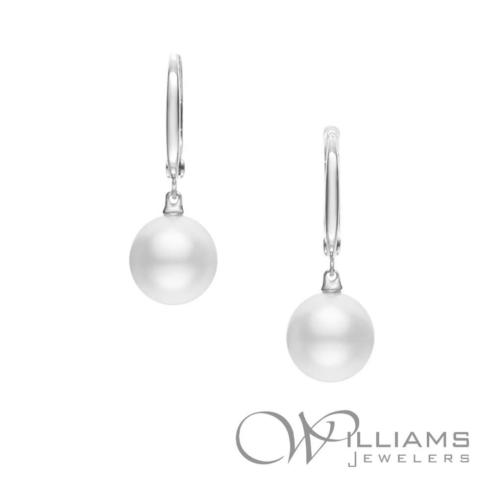 Mikimoto 18 Karat White Gold 10mm White South Sea Pearl Huggie Earrings. (A+)