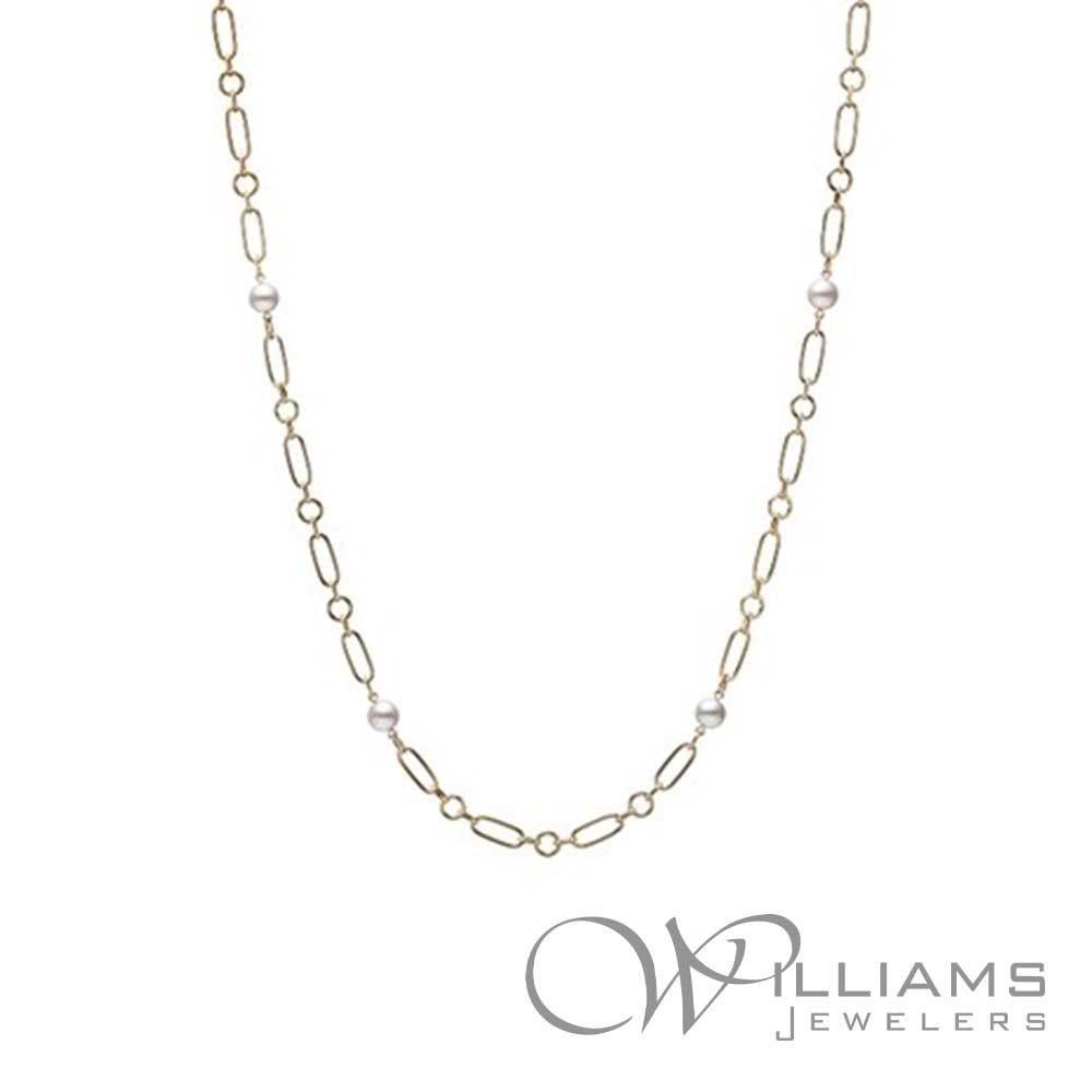 Mikimoto 18 Karat White Gold 6.5mm Akoya Cultured Pearl Station Chain Necklace. 24 Inches in Length (A+)
