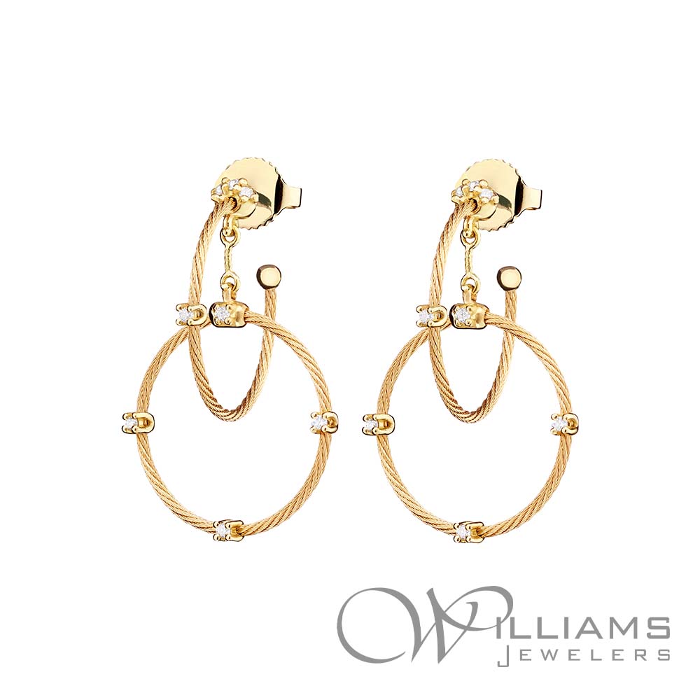 Paul Morelli 18 Karat Yellow Gold Unity Double Wire Diamond Rain Chain Hoop Dangle Earrings with .14 Carat Total Weight Round G-H Color, VS1-VS2 Clarity Diamonds.