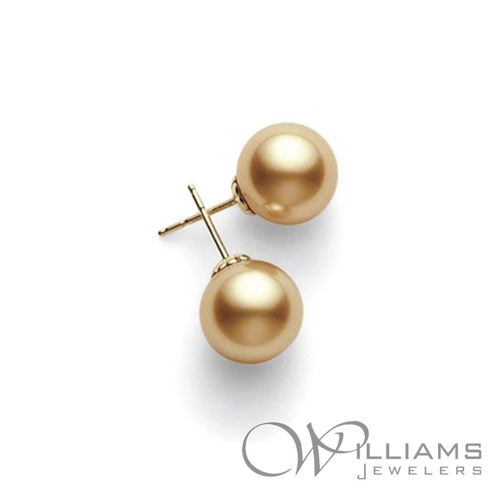 Mikimoto 18 Karat Yellow Gold 9mm Golden South Sea Pearl Stud Earrings, (A+)