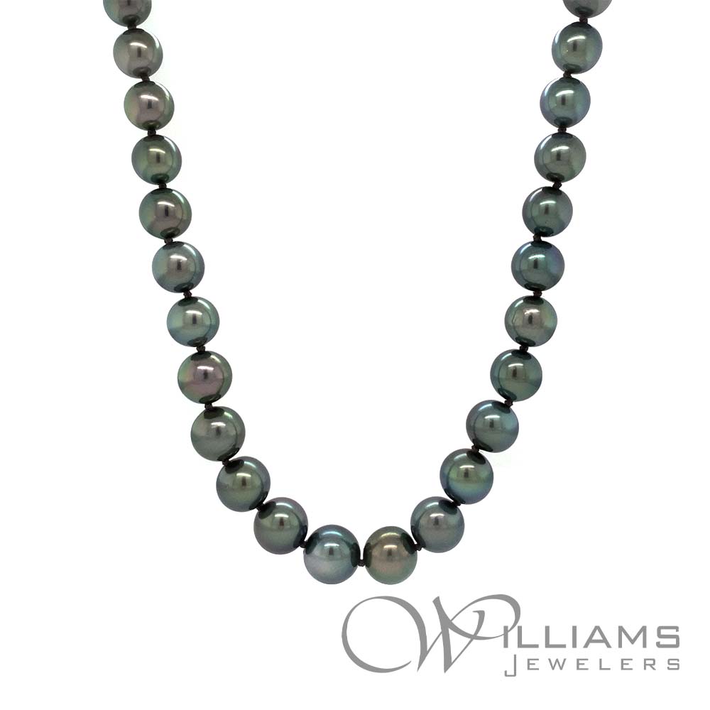 Williams Signature 14 Karat White Gold Graduated Tahitian Pearl Necklace with 31=12.1-14.6mm Cultured Tahitian Pearls, 17.5 inches in length