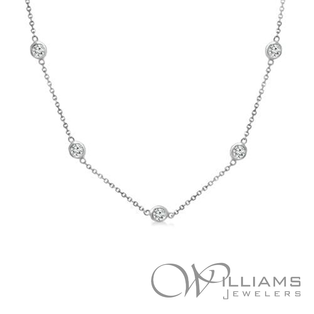 Roberto Coin 18 Karat White Gold Diamonds by the Inch 7 Station Bezel Set Diamond Necklace with 7=.35 Carat Total Weight G-H Color, SI Clarity Diamonds. 16-18 Inch Adjustable Chain