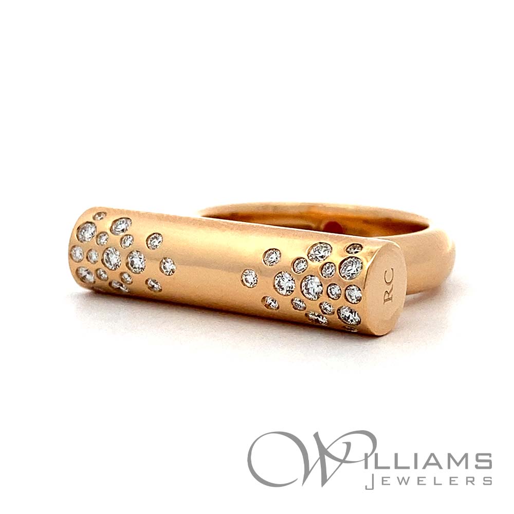 Roberto Coin 18 Karat Rose Gold Domino Diamond Ring with .30 Carat Total Weight Round G-H Color, SI Clarity Diamonds. Size 6.25