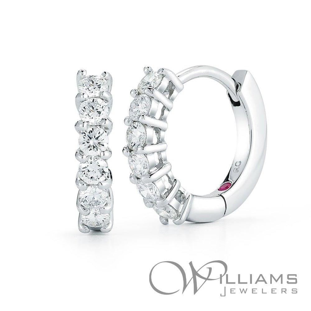 Roberto Coin 18 Karat White Gold Perfect Diamond 15mm Huggie Earrings with .70 Carat Total Weight Round G-H Color, SI Clarity Diamond.