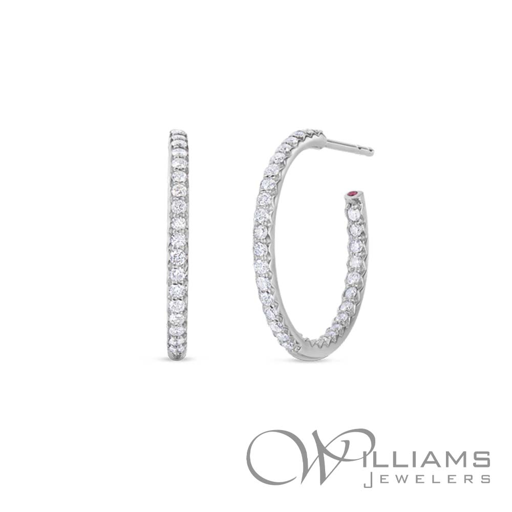 Roberto Coin 18 Karat White Gold Perfect Diamond Hoops Small Inside Outside Diamond Hoop Earrings with .66 Round G-H Color, SI Clarity Diamonds. 21mm