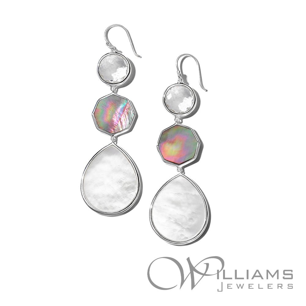 Ippolita Sterling Silver Rock Candy Crazy 8's Drop Earrings in Mother-of-Pearl, Rock Crystal, and Brown Shell