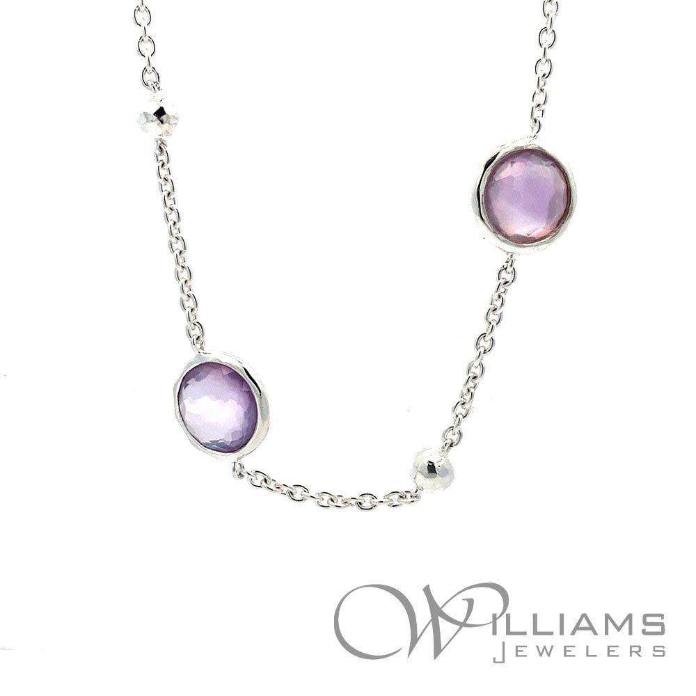 Ippolita Sterling Silver Lollipop Rock Crystal, Mother of Pearl, and Amethyst Station Necklace. 38 Inches in Length
