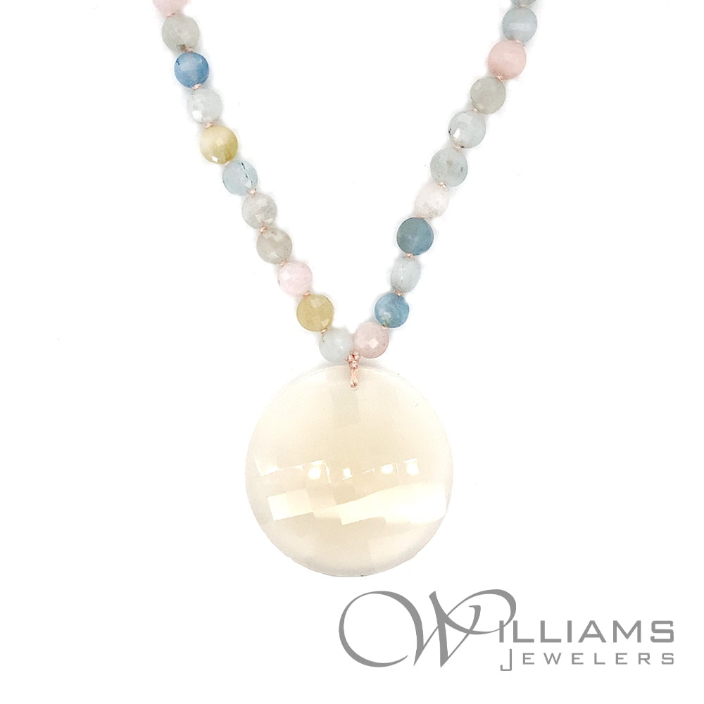 Sophie Gems Sterling Silver Chalcedony and Morganite Necklace with one 33mm Faceted Milky Chalcedony Disc and 6mm Flat Faceted Pastel Morganite Beads in 18 Inches