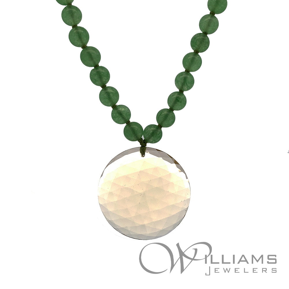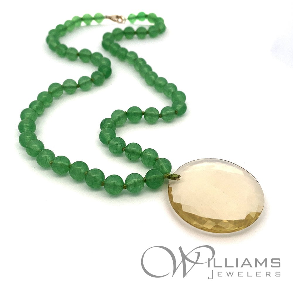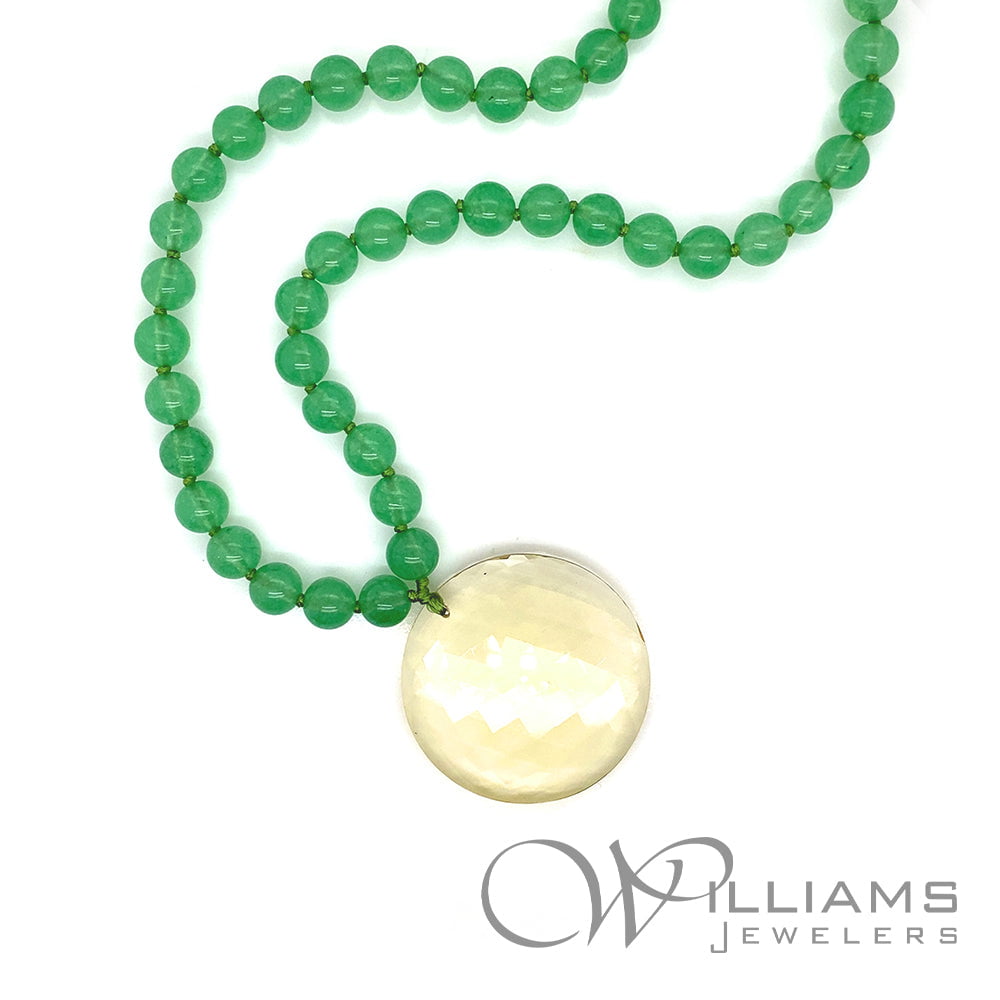 Sophie Gems Sterling Silver Lemon Quartz & Aventurine Bead Necklace with one 31mm Faceted Lemon Quartz Disc Center and 6mm Green Aventurine Beads, 18 Inches.