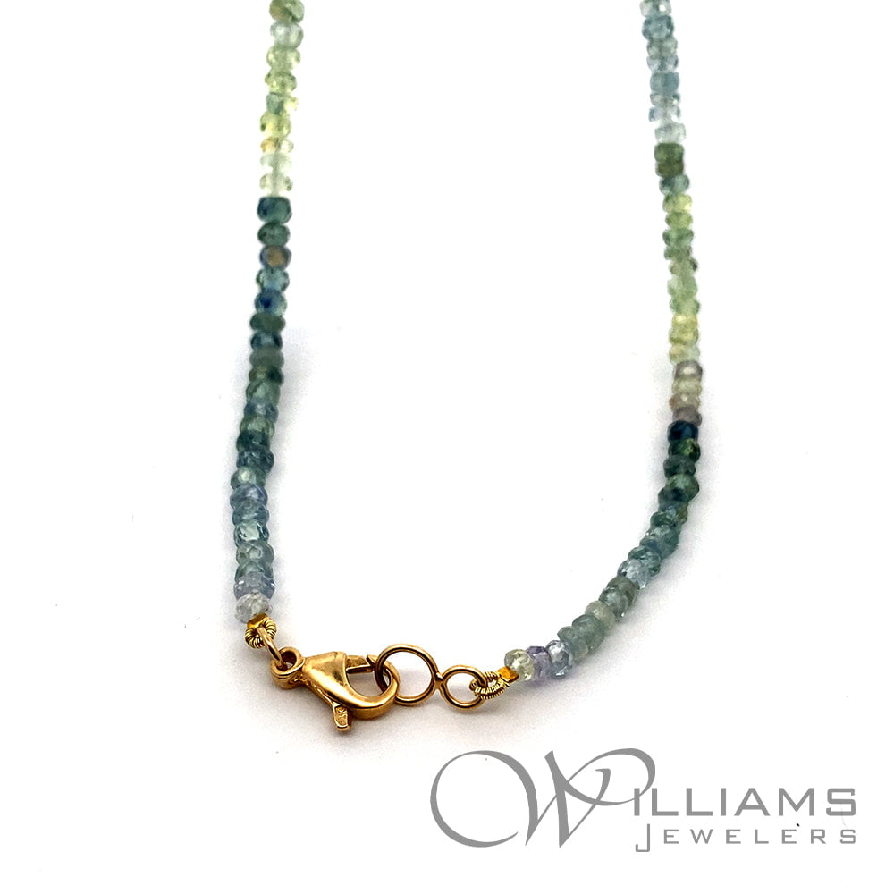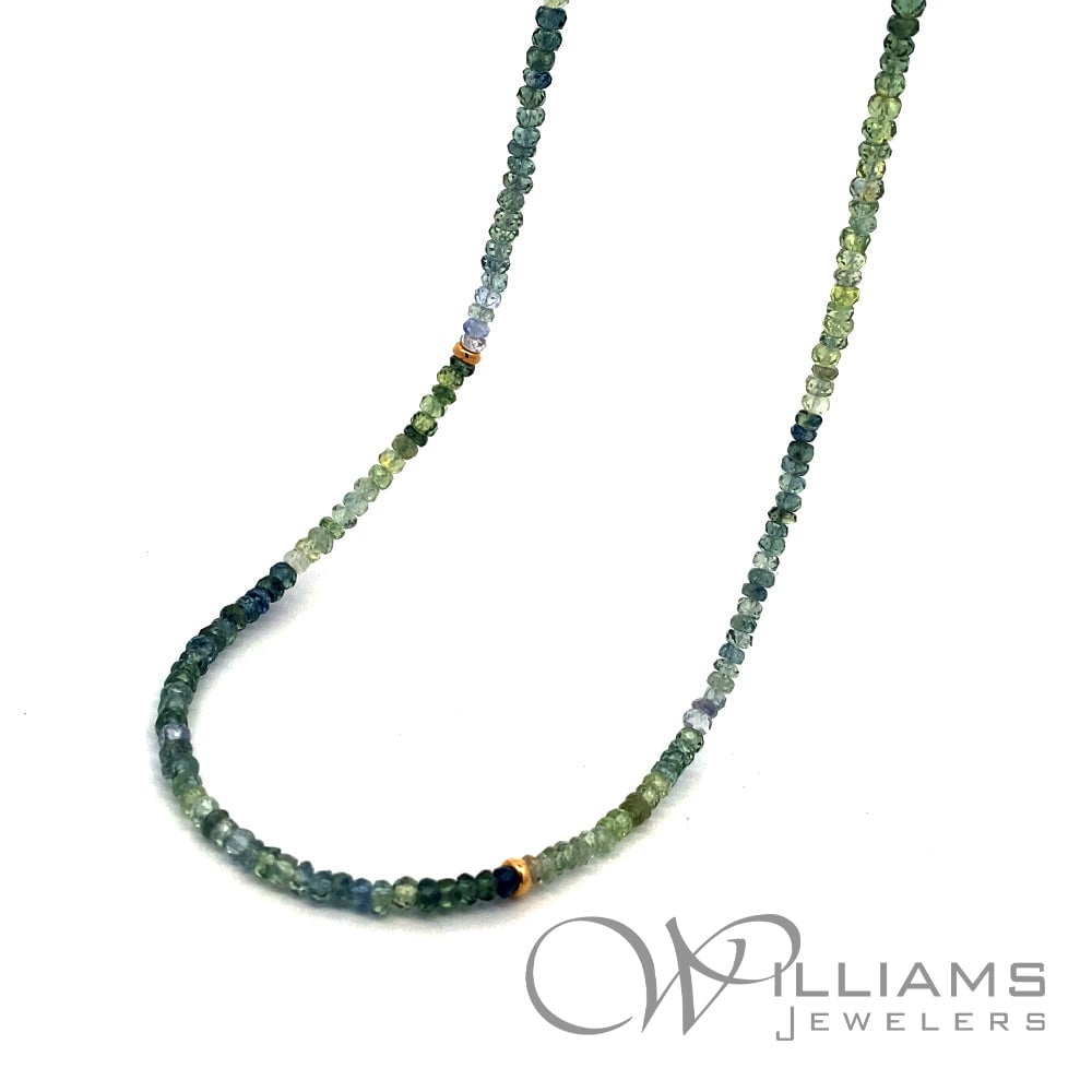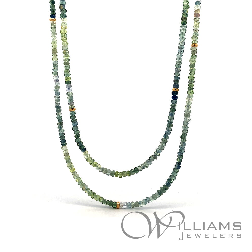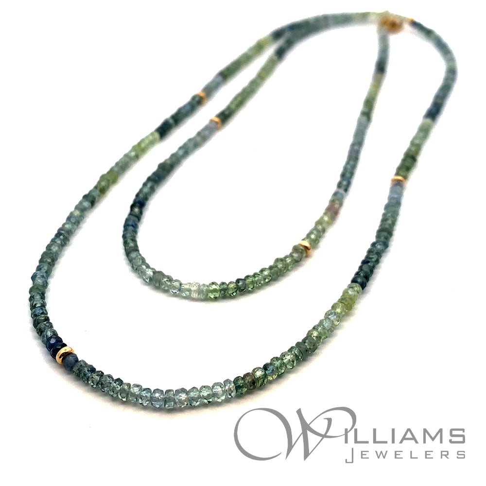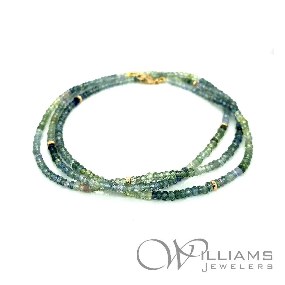 Sophie Gems 14 Karat Yellow Gold Montana Sapphire Bead Necklace with 2.8-3.2mm Sapphire Faceted Beads and 14ky Rondelles, 28.5 Inches in length