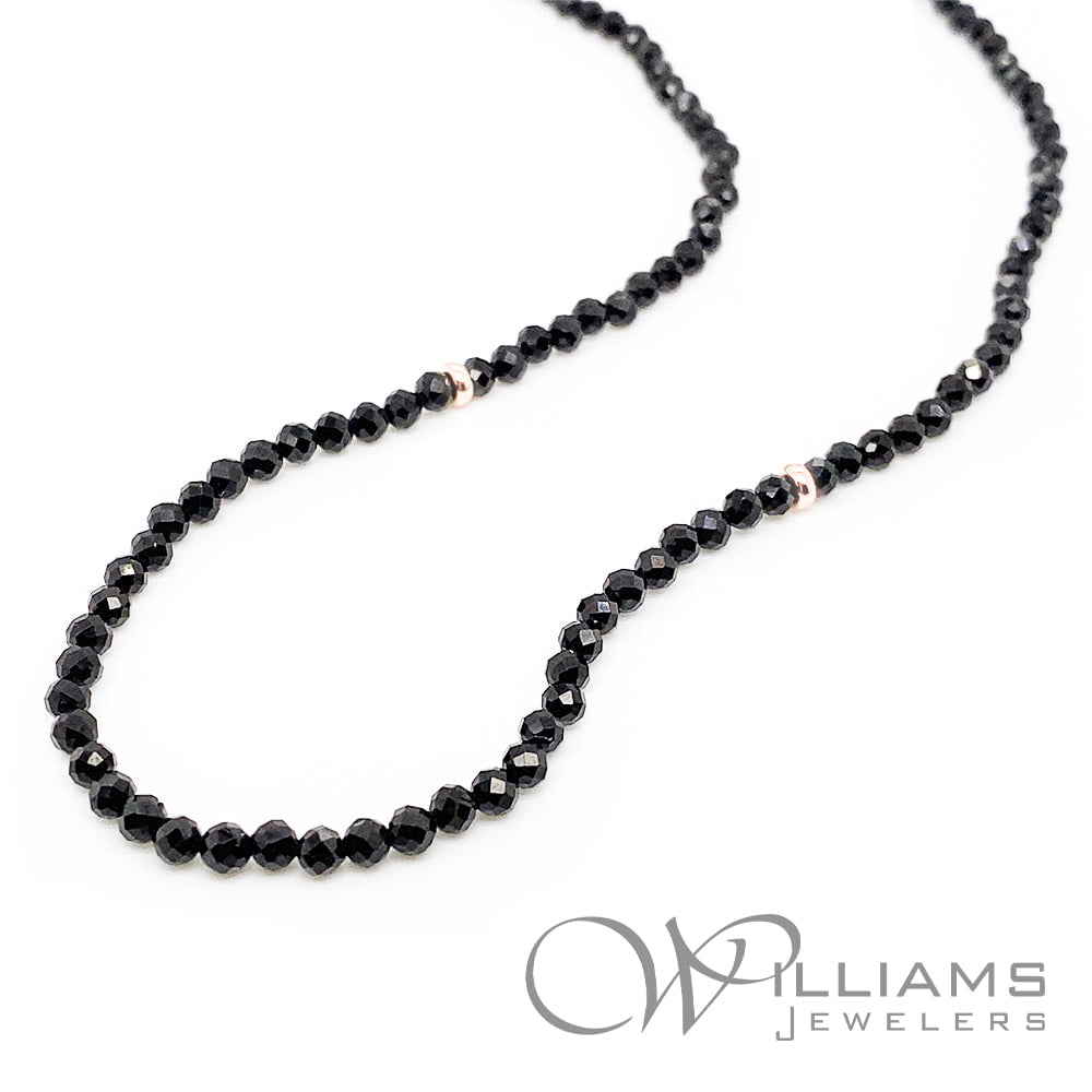 Sophie Gems 14 Karat Yellow Gold 3.3mm Rondelle and 3.5mm Round Faceted Black Spinel Beads in 18 Inches.
