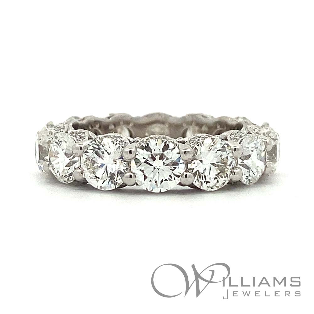 Tacori 18 Karat White Gold Classic Crescent Diamond Eternity Band with 7.35 Carat Total Weight Round G Color, VS Clarity Diamonds. Size 7.5, Serial # 380046