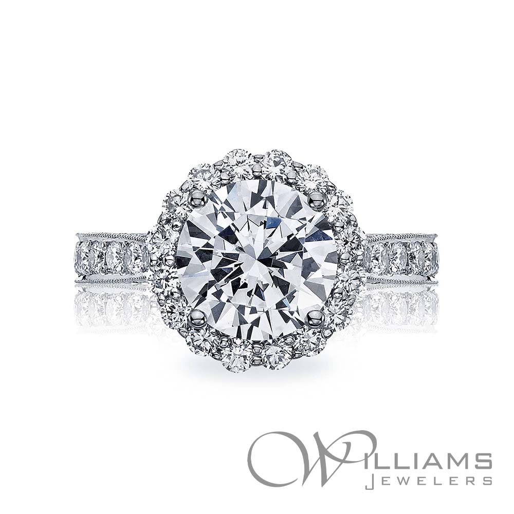 Tacori Platinum RoyalT Diamond Semi-Mount Halo Ring with 1.14 Carat Total Weight Round G Color, VS Clarity Diamonds, Size 6.5, Serial #: 546449
