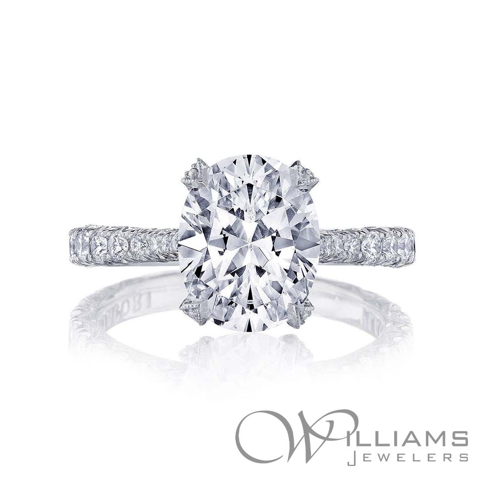 Tacori Platinum RoyalT Diamond Oval Semi-Mount Ring with .83tw Round G Color, VS Clarity Diamonds and a center 9.5x7.5mm (2ct) Oval Cubic Zirconia, Size 6.5 (Ser# 506809)