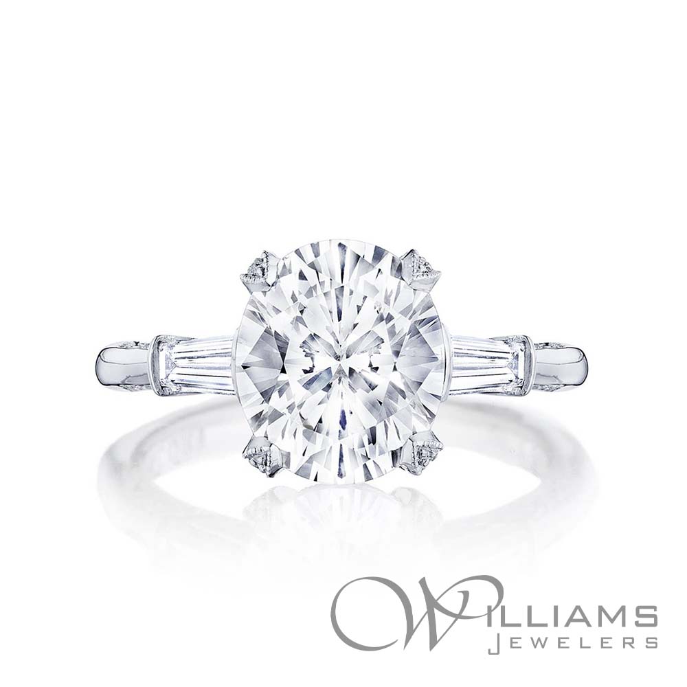 Tacori Platinum RoyalT Diamond Baguette Oval Semi-Mount Ring with .67tw Round and Baguette G Color, VS Clarity Diamonds and a center 9x7mm (1.75ct) Oval Cubic Zirconia, Size 6.5 (Ser# 512955)
