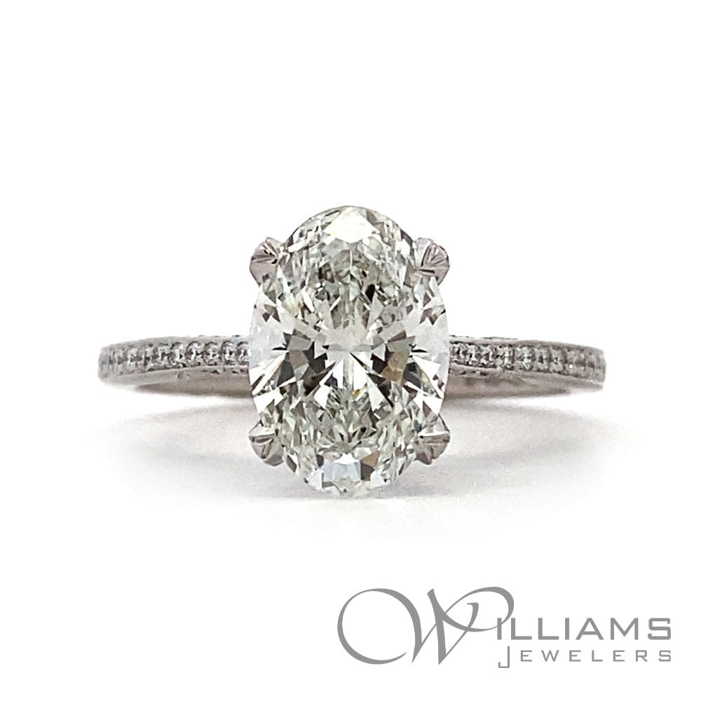 18 Karat White Gold Simply Tacori Diamond Semi-Mount Ring with .33 Carat Total Weight Round G Color, VS Clarity Diamonds and a center 9.5x7mm (2.00ct) Oval Cubic Zirconia, Size 6.5 (Serial# 568391)