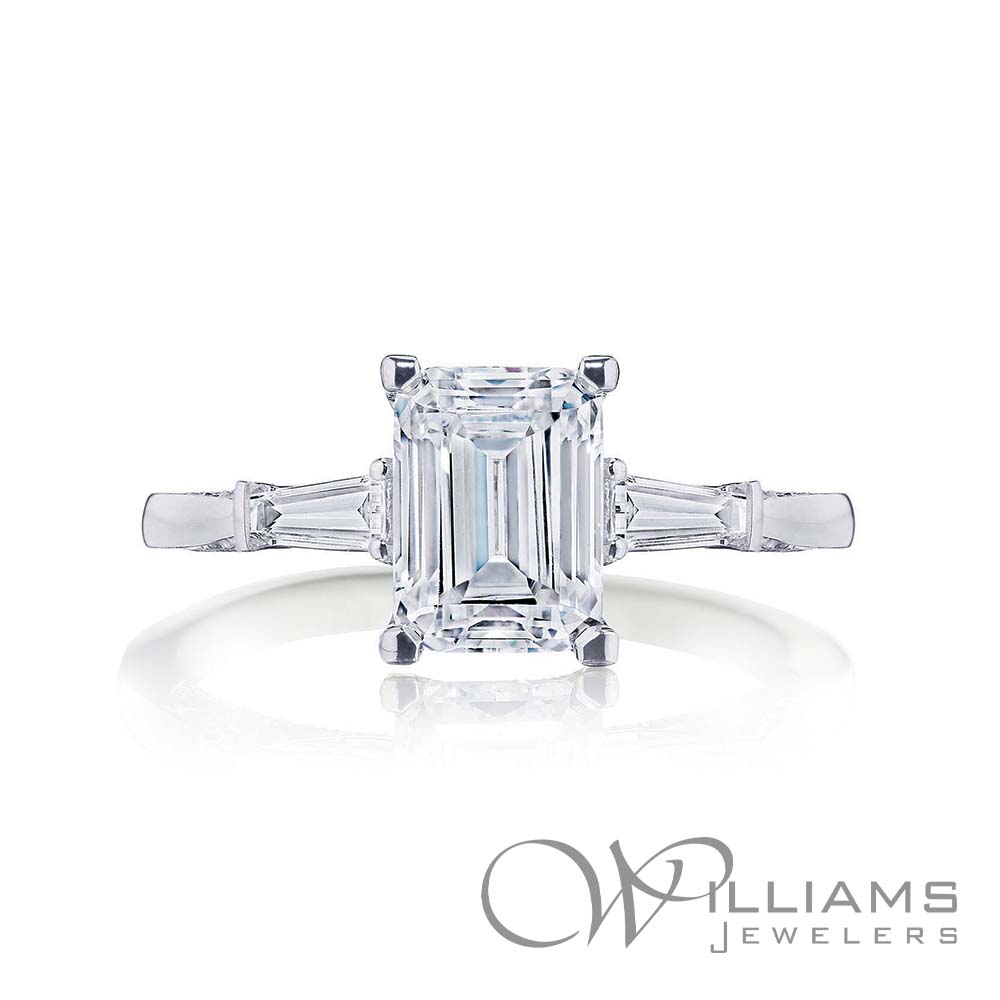 18kw Simply Tacori Diamond Semi-Mount Ring with .35tw Baguette and Round G Color, VS Clarity Diamonds and a center 6.5x4.5mm (1ct) Emerald-Cut Cubic Zirconia, Size 6.5 (Ser# 510124)