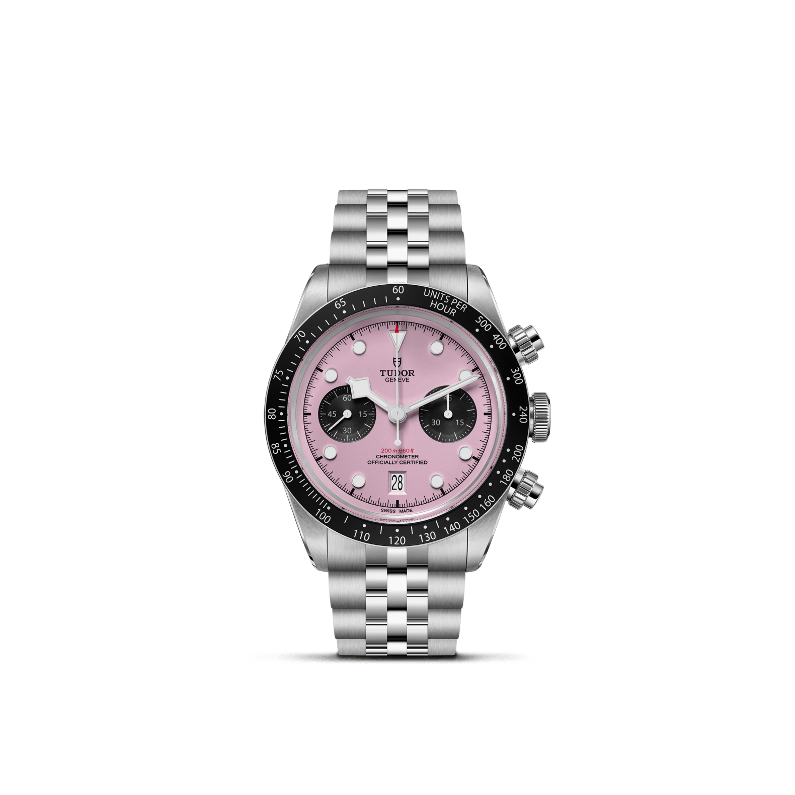 DIAL: TPink with black counters, domed Date at 6 o'clock