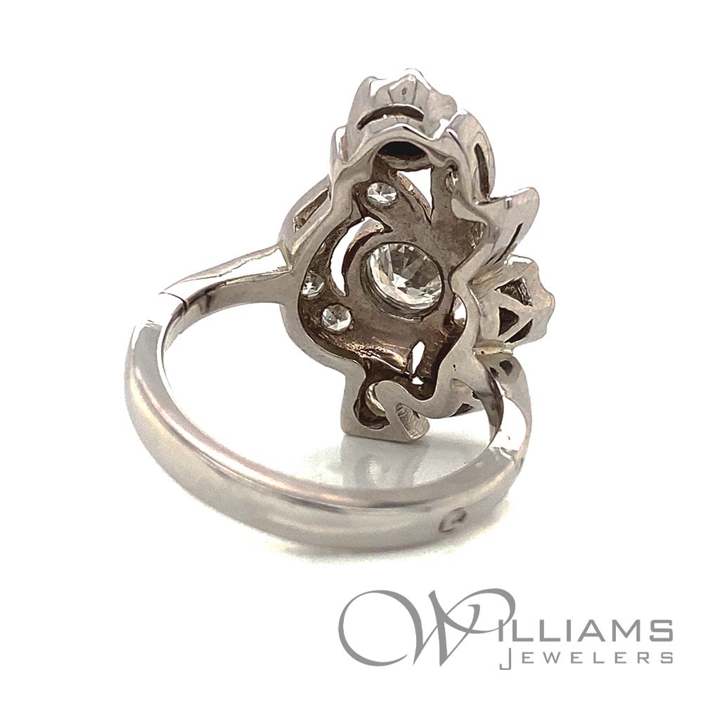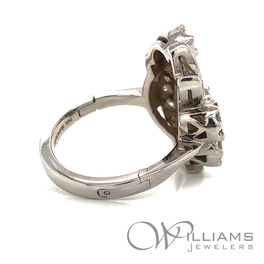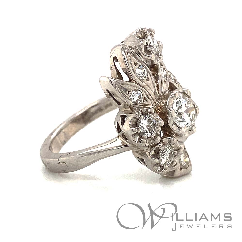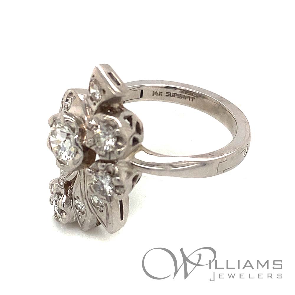 Vintage 14 Karat White Gold Diamond Cluster Ring with Superfit Shank and 5=1.05 Carat Total Weight Round G-H Color, VS Clarity Diamonds and 7=.20 Carat Total Weight Single Cut Round G-H Color, VS Clarity Diamonds, Size 7 (Approximate Weights)