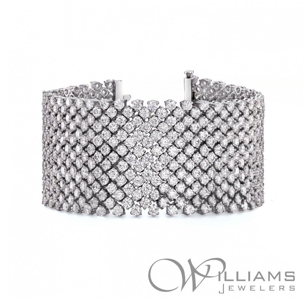 Williams Couture 18 Karat White Gold Diamond 15 Row Bracelet with 540=62.26 Carat Total Weight Round G-H Color, SI Clarity Diamonds, 7 inches in length