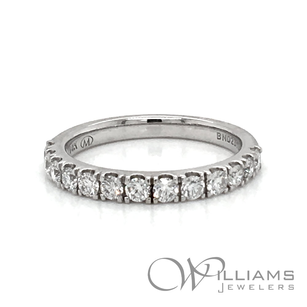 Williams Signature 14 Karat White Gold Halfway Diamond Band with .50 Carat Total Weight Round G Color, SI1 Clarity Diamonds, Size 7