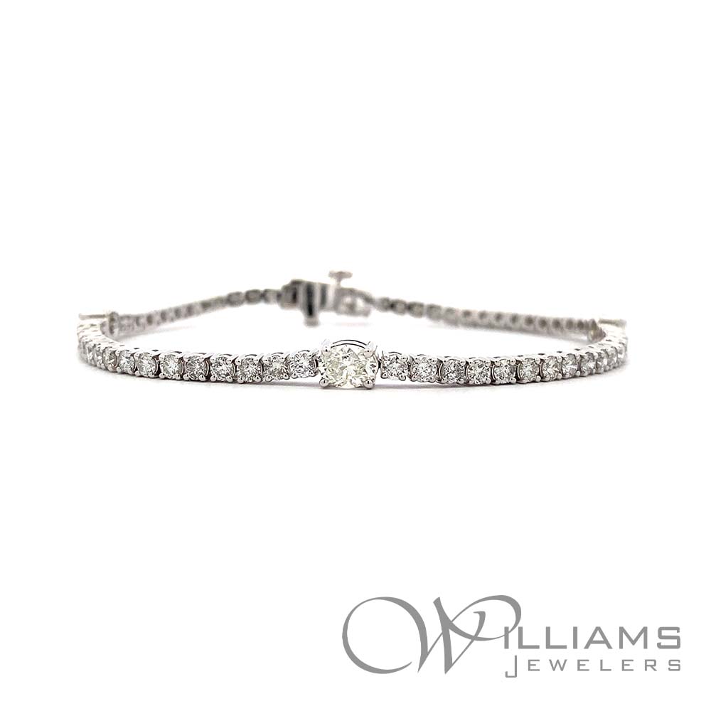 Williams Signature 14 Karat White Gold Diamond Bracelets with 64=5.00 Carat Total Weight Oval Cut and Round H-I Color, VS1-SI2 Clarity Diamonds. 7 Inches in Length