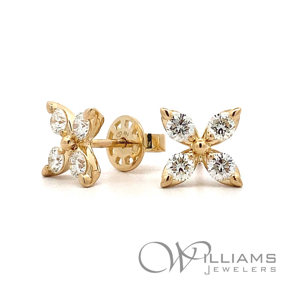 Williams Signature 14 Karat Yellow Gold Diamond Stud Earrings with 8=.75 Carat Total Weight Round J-K Color, I1 Clarity Diamonds.