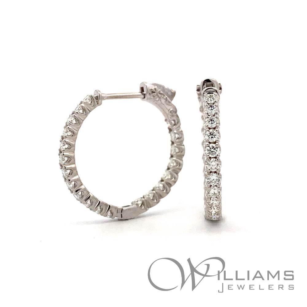 Williams Signature 14 Karat White Gold Diamond Inside-Outside Hoop Earrings with 40=1.01 Carat Total Weight Round I-J Color, VS Clarity Diamonds.