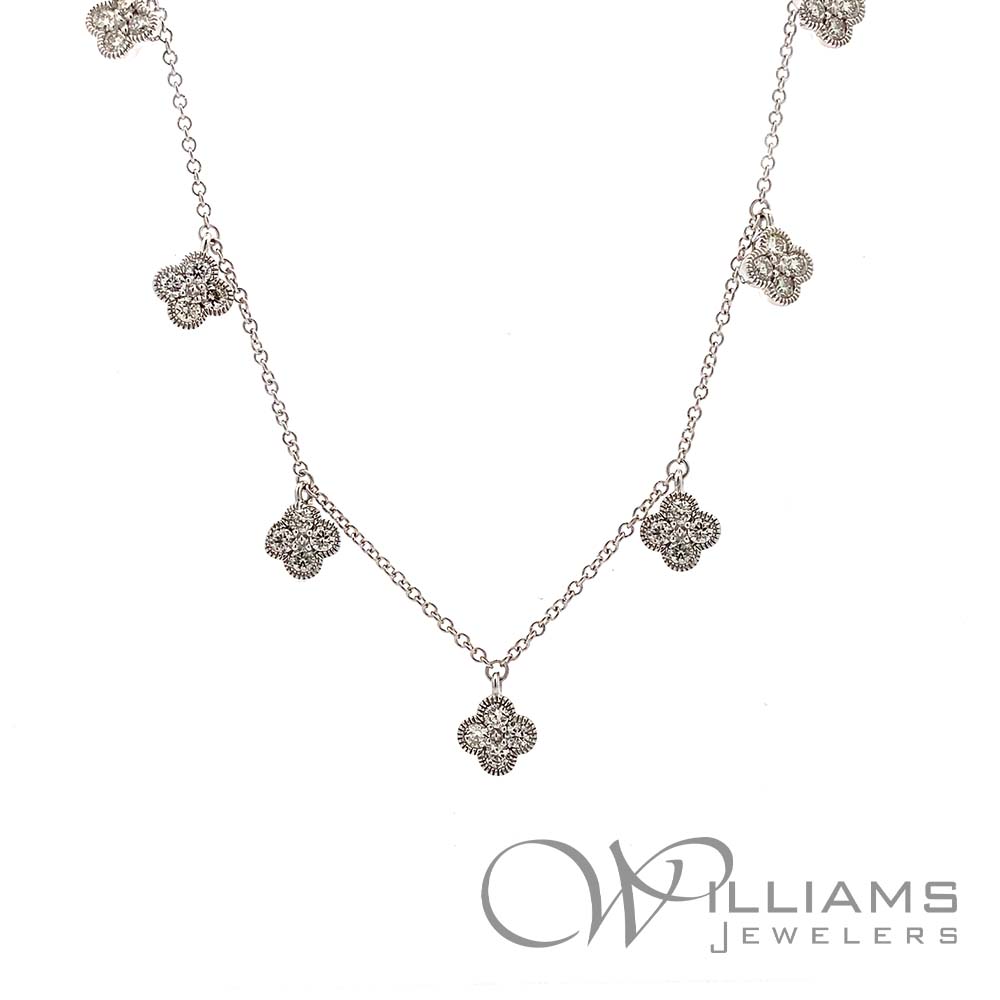 Williams Signature 14 Karat White Gold Diamond Station Necklace with 36=.62 Carat Total Weight Round I-J Color, I1 Clarity Diamonds. 16-18 Inch Adjustable Chain