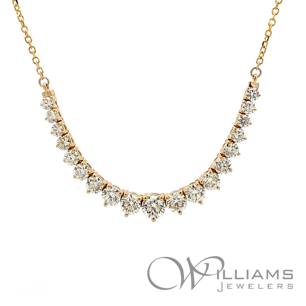 Williams Signature 14 Karat Yellow Gold Diamond Necklace with 19=4.00 Carat Total Weight Round I-J Color, VS Clarity Diamonds. 16-18 Inch Adjustable Chain