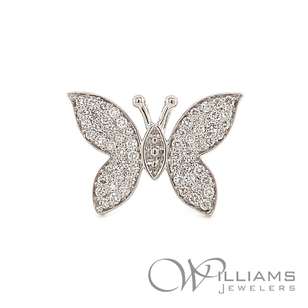 Williams Signature 14 Karat White Gold Diamond Butterfly Pendant with 60=.49 Carat Total Weight Round G-H Color, SI Clarity Diamonds.