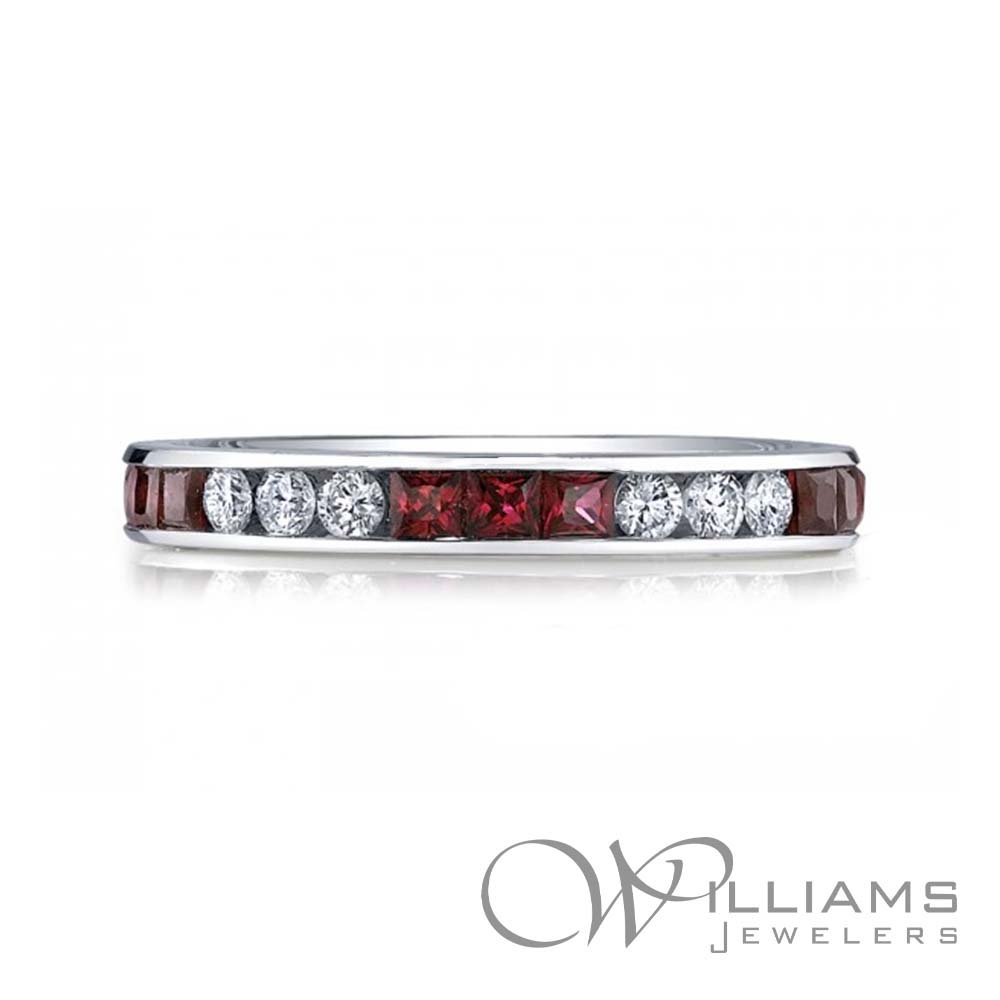 Williams Signature 14 Karat White Gold Ruby and Diamond Alternating Eternity Band with 15=.97 Carat Total Weight Princess Cut Rubys and 15=.53 Carat Total Weight Round G-H Color, VS Clarity Diamonds. Size 6.5