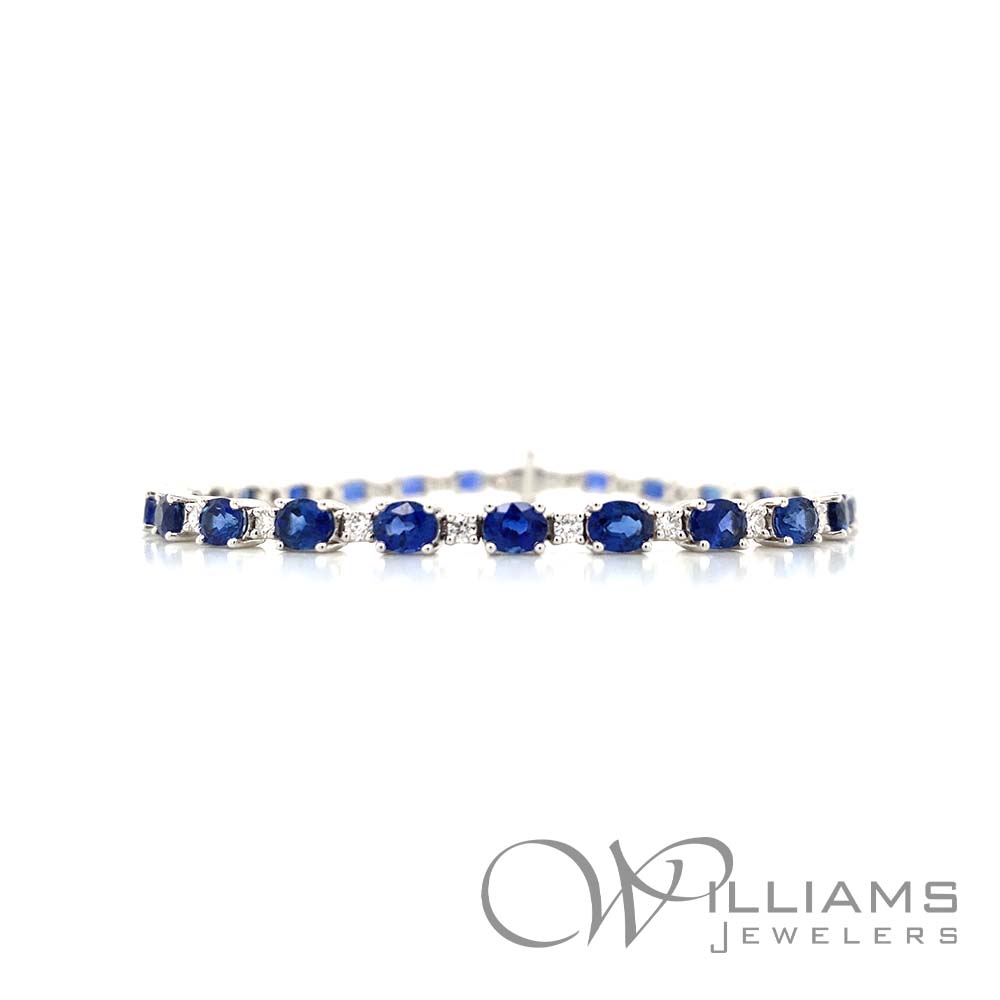 Williams Signature 18 Karat White Gold Blue Sapphire & Diamond Bracelet with 8.75 Carat Total Weight Oval Cut Blue Sapphire and .88 Carat Total Weight Round G-H Color, VS Clarity Diamonds