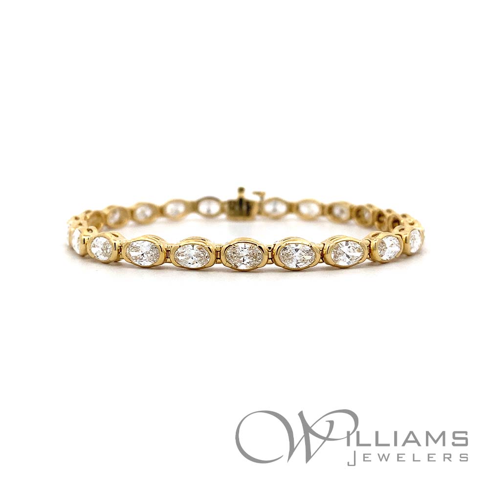 Williams Signature 18 Karat Yellow Gold Bezel Set Diamond Bracelet with 24=5.79 Carat Total Weight Oval Cut F-G Color, VS2-SI1 Clarity Diamonds. 6.5 Inches in Length