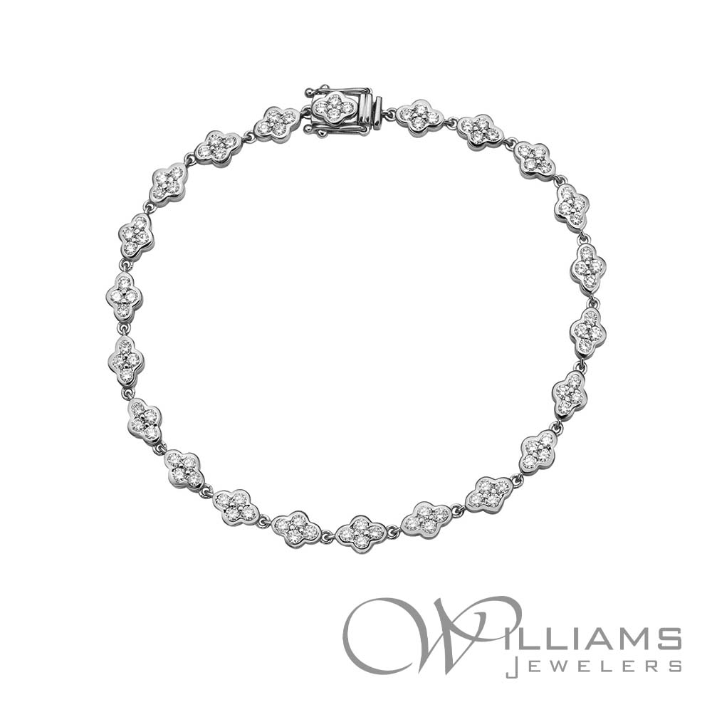Williams Signature 18 Karat White Gold Diamond Floral Cluster Link Bracelet with 88=1.83 Carat Total Weight Round G Color, VS2 Clarity Diamonds, 7 Inches in Length
