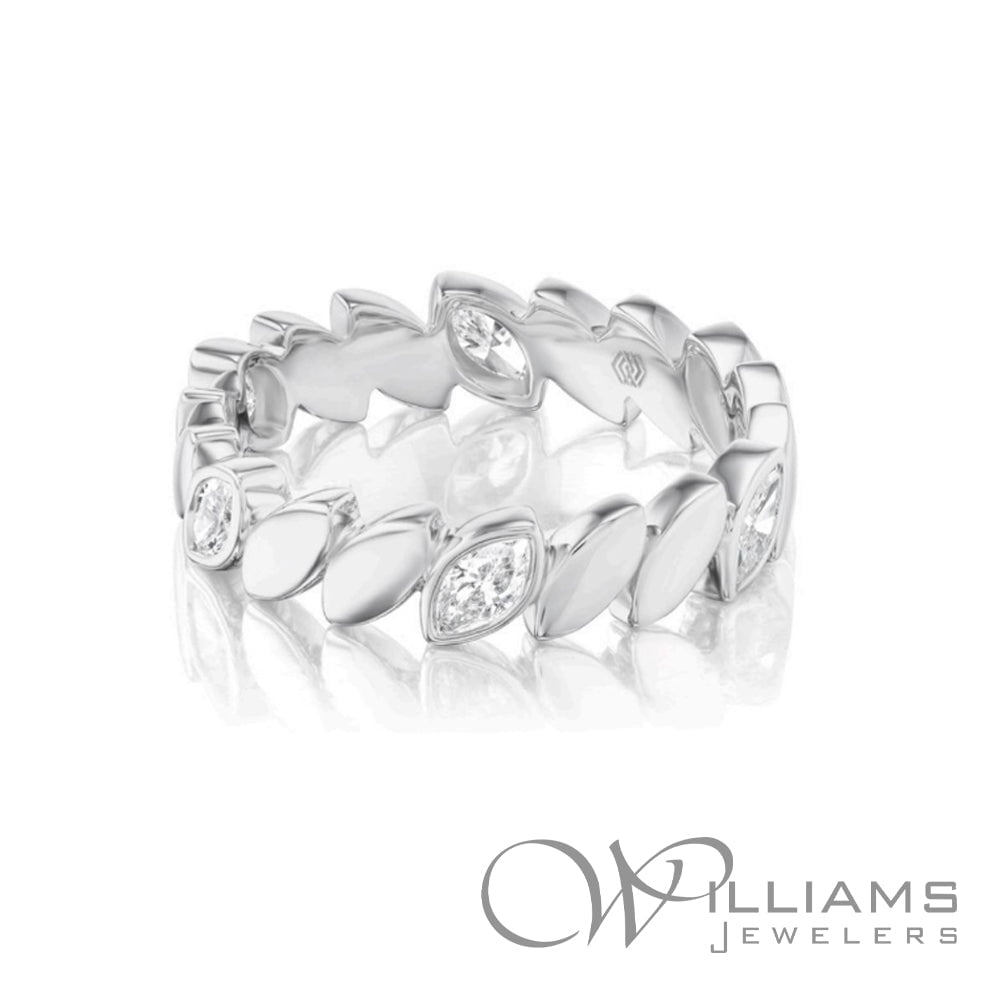 Williams Signature 18 Karat White Gold Bezel Ring with 1.31 Carat Total Weight Marquise Shaped G-H Color SI Clarity Diamonds, Size 6