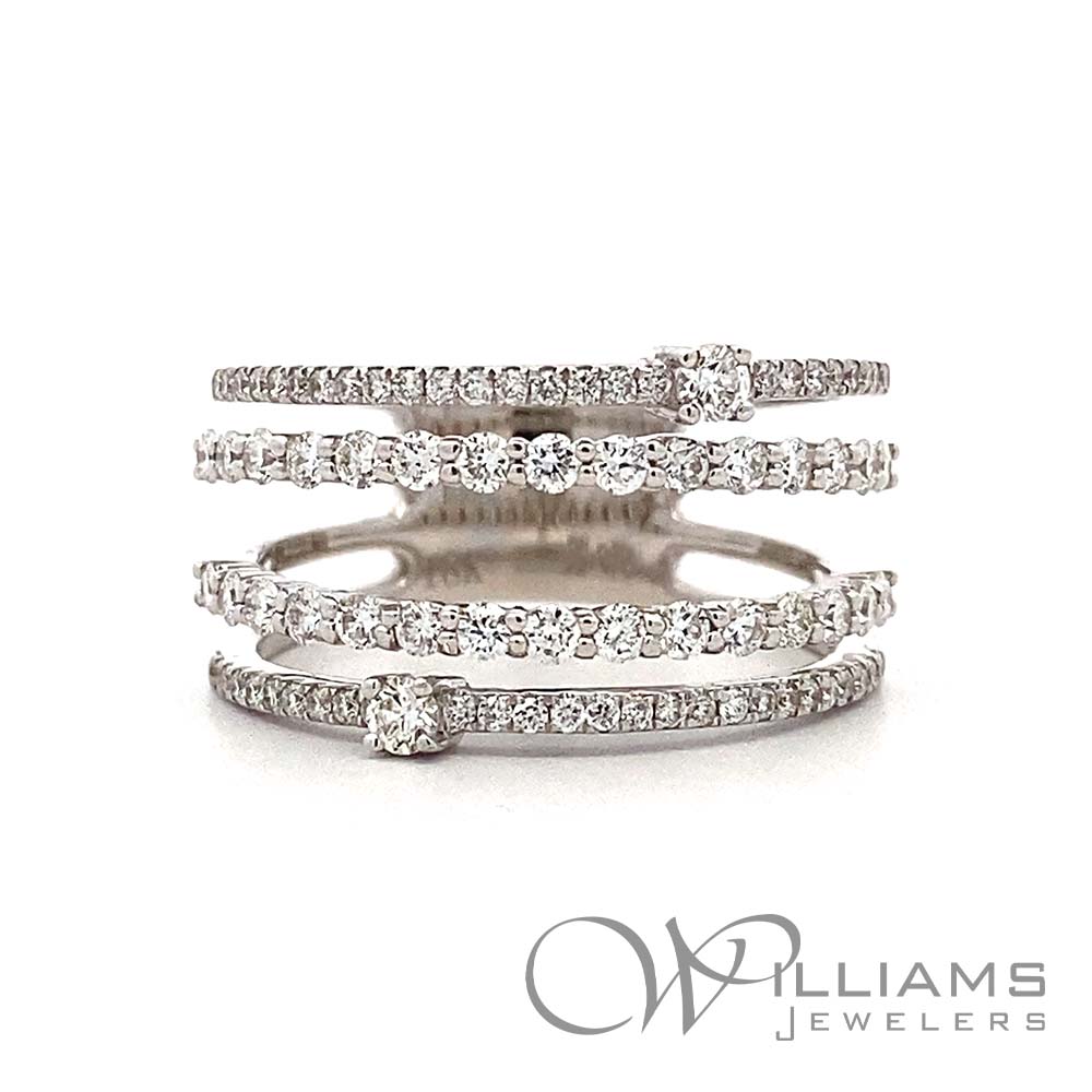 Williams Signature 18 Karat White Gold Diamond Ring with 84=.81 Carat Total Weight Round G Color, VS2 Clarity Diamonds. Size 6.5