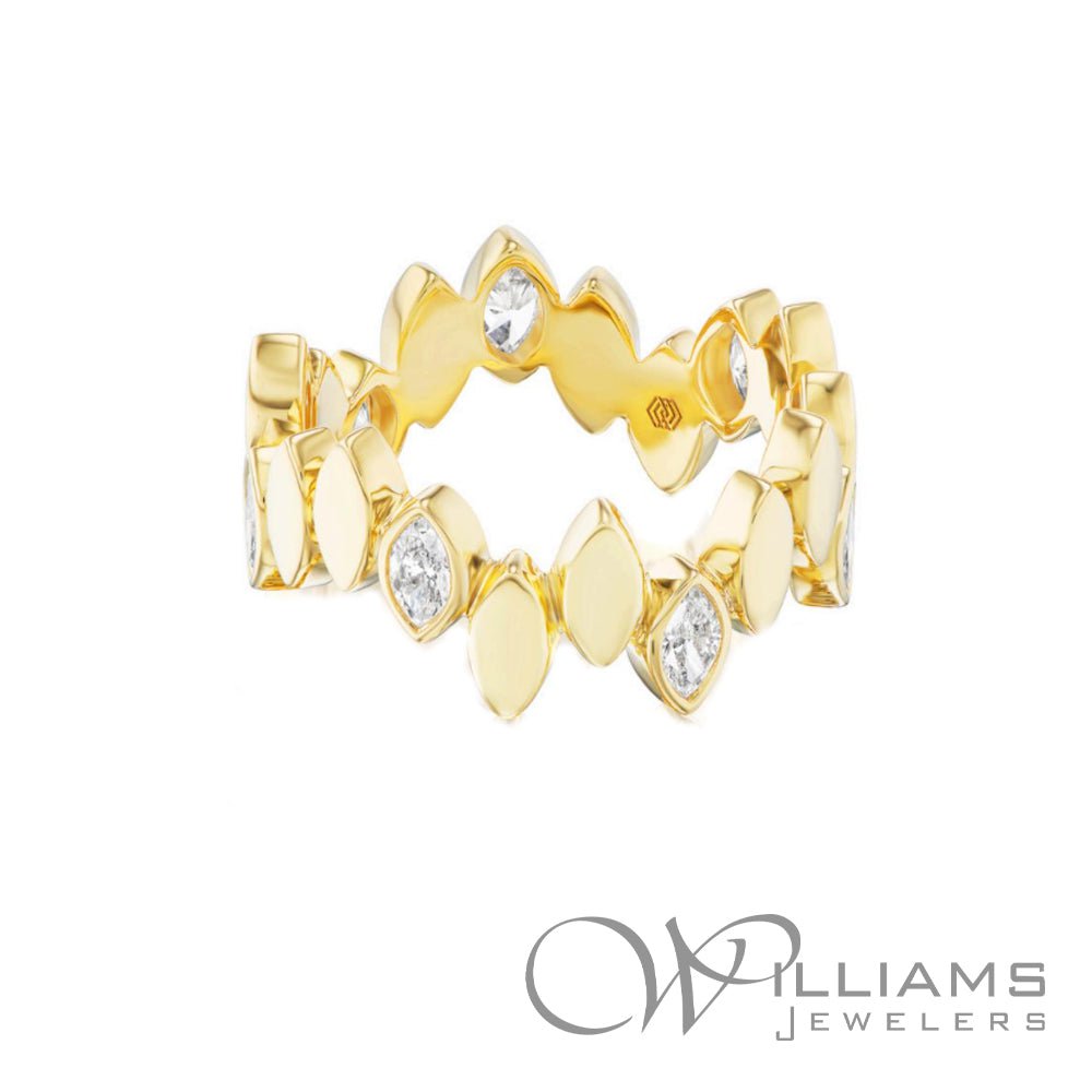 Williams Signature 18 Karat Yellow Gold Bezel Ring with .62 Carat Total Weight Marquise Shaped G-H Color SI Clarity Diamonds, Size 6