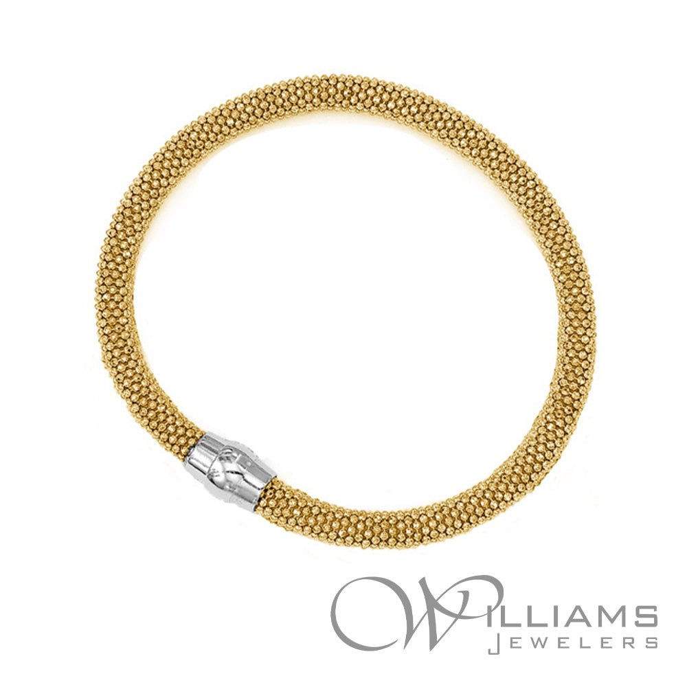 Williams Signature Sterling Silver Yellow 4.7mm Round Diamond-Cut Bead Link Magnetic Bracelet, 7.5 Inches