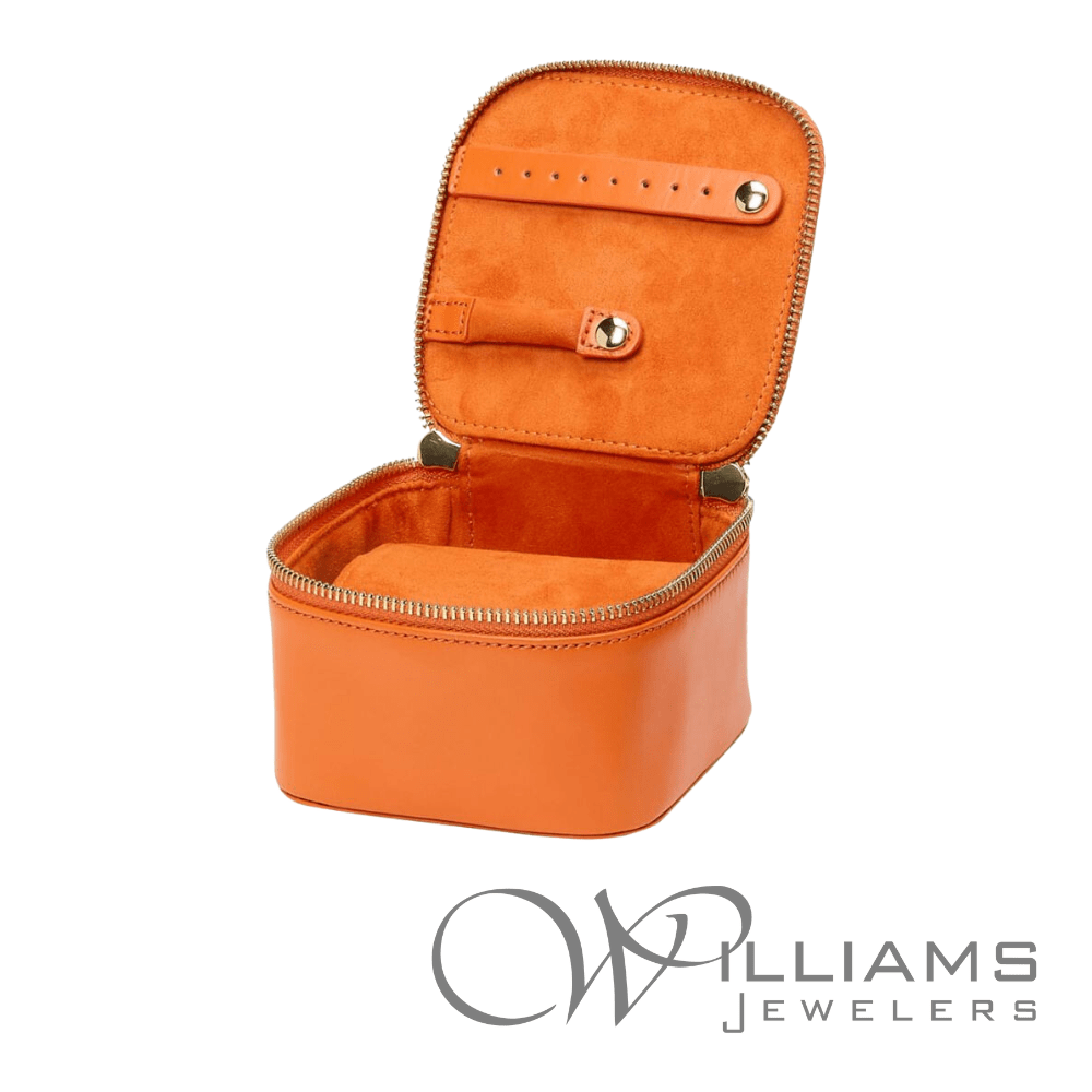 Wolf Designs Maria Zip Jewelry Cube in Tangerine with Ring Bar, Earring Bar, and 5 Zip Compartments