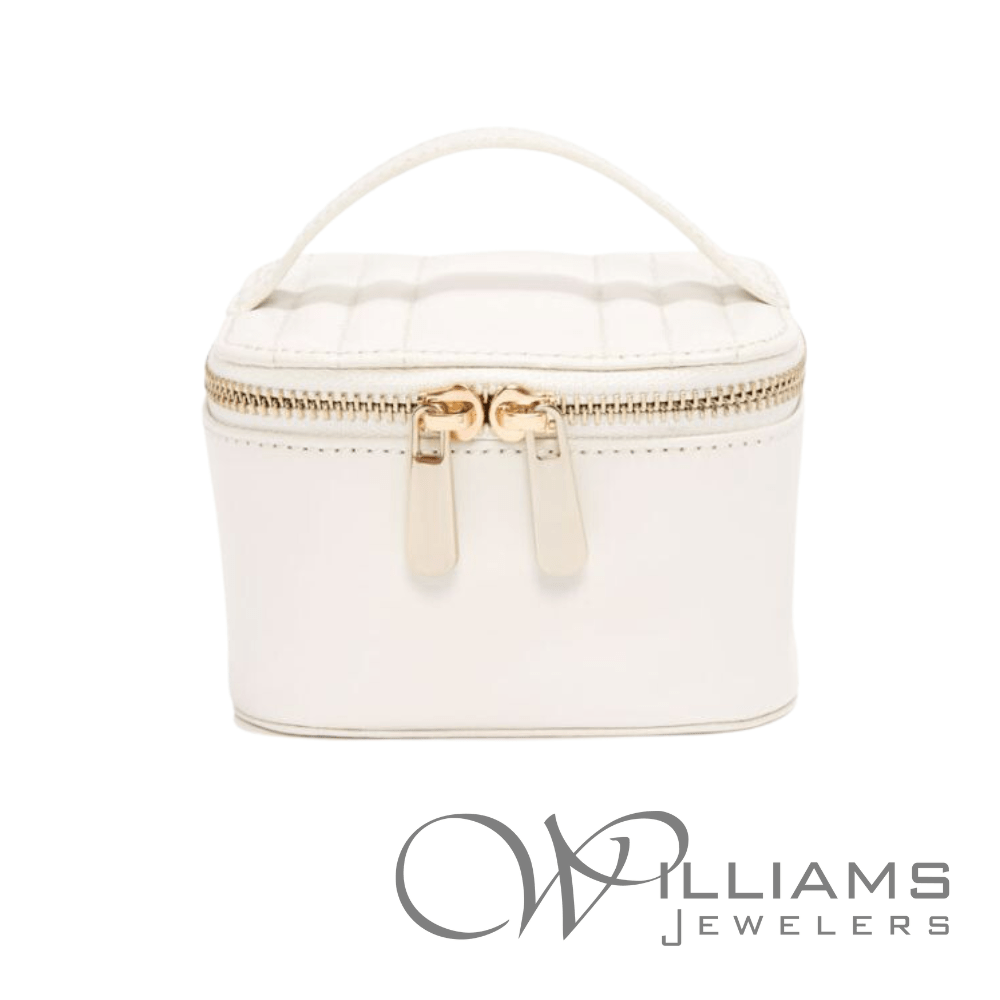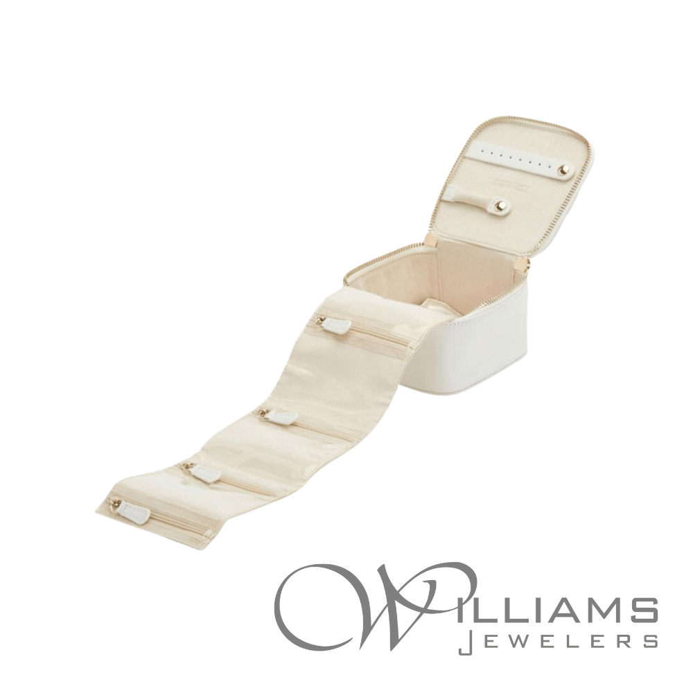 Wolf Designs Maria Zip Jewelry Cube in White with Ring Bar, Earring Bar, and 5 Zip Compartments